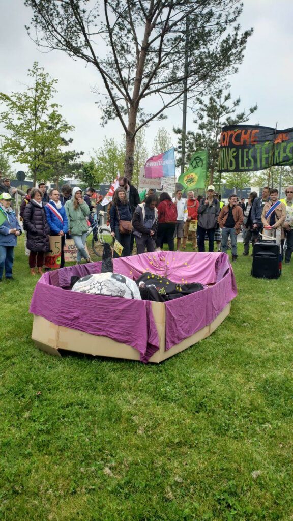 Ce mardi 26 avril 2022, partout en France, un Retour sur Terres par l’action a eu lieu pour dénoncer et agir contre les projets injustes, nuisibles et polluants proches de chez nous. Loin d’être « NIMBY » (« pas dans mon jardin »), nous prenons notre droit d’être entendu⋅es car nous n’attendons plus rien d’un gouvernement activement complice de ces entreprises et projets qui empoisonne la vie et nous condamnent à un avenir sombre.